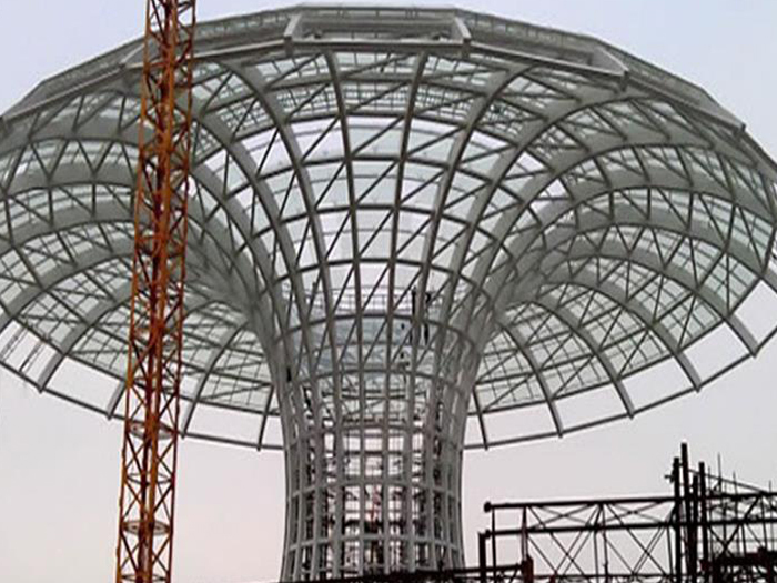 二、球形网架结构因其结构新颖,受力合理,自重轻、用钢量低等优点。如大型体育场馆球形泊头螺栓球网架、公共场馆球形网架、电厂泊头螺栓球网架、水泥工业球形网架、仓储物流球形网架、泊头干煤棚工业球形网架、泊头收费站泊头加油站球形网架、展览中心、影剧院、商场、航站楼、候车厅、工厂泊头车间、仓库、电视塔等球形螺栓球节点网架。国内球形网架结构主要分为:泊头焊接球节点网架及螺栓球节点网架两种。螺栓球节点网架其构件工厂内加工量较大,现场安装便捷,适用于现场工期紧,泊头施工条件、用电量受制约,网架形状复杂、泊头杆件定位困难的异形结构。螺栓球节点球形网架系统基本由泊头杆件、螺栓球、支撑支座等组成。按照节点形式可分为交叉泊头桁架体系、四角锥体系、三角锥体系等。支撑方式多为固定支座支撑。对于大面积、大跨度及有特殊受力或伸缩要求的网架结构可采用橡胶支座、滑移支座、球铰支座等支撑形式,以满足结构自身的受力稳定、均衡,便于内力释放等设计要求。